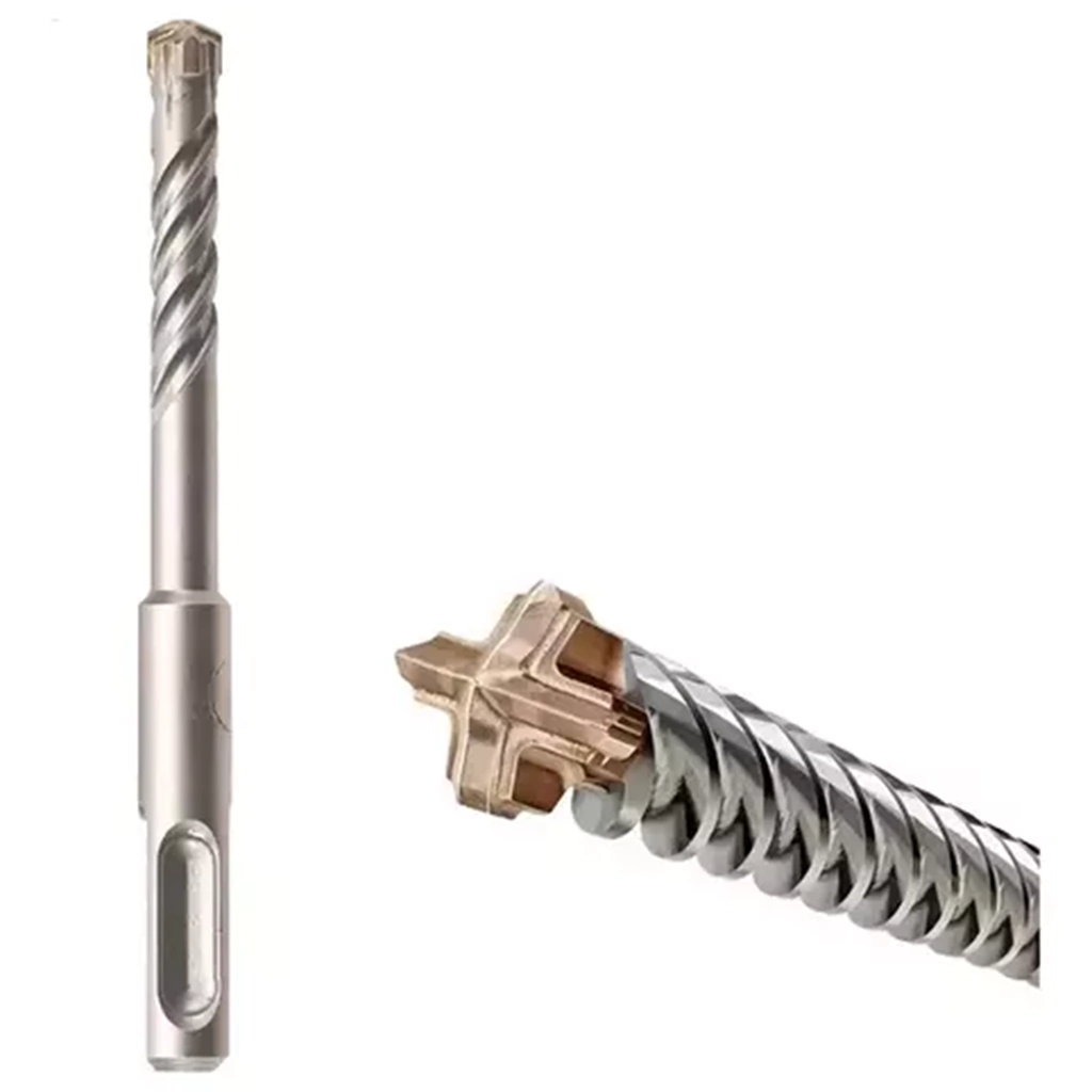 Broca de percusión, vástago de inserción para SDS plus, punta CROSS-Tip de 4 filos, de uso óptimo en hormigón armado, no se engancha. Soldada a elevada temperatura, espiral múltiple para una extracción óptima del polvo al taladrar, taladrado delicado del material y elevada transmisión de fuerza, reducidas vibraciones y taladrado silencioso. Ideal para taladrar agujeros para espigas o para técnicas de sujeción en muros de hormigón.