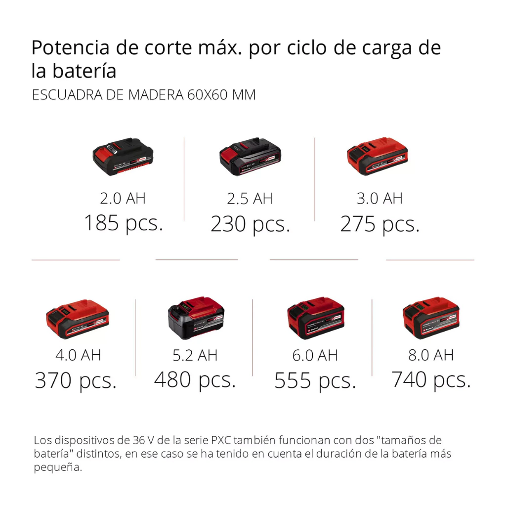 La ingletadora telescópica a batería Einhell TE-SM 36/210 Li – Solo permite cortes a inglete y acortado de parqué sin cables, gracias a su compatibilidad con la familia Power X-Change. Incluye función de tracción suave, apoyos X-Tend regulables, dispositivo de sujeción, mesa giratoria con ajuste preciso y cabezal inclinable hasta 45°. Equipada con hoja de metal duro de alta calidad, láser y luz LED para cortes exactos, y saco colector o adaptador de aspiración para mantener limpio el área de trabajo. La batería se adquiere por separado.