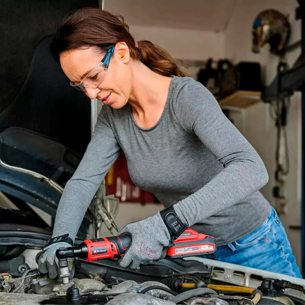 Compacta, potente y perfecta para mecánica automotriz. Ofrece 60 Nm de torque, portaherramientas de 3/8”, función reversible y uso manual opcional. Ideal para zonas difíciles gracias a su diseño ergonómico, empuñadura antideslizante y luz LED integrada. Velocidad variable y botón amplio para operar desde cualquier ángulo. Incluye adaptador a 1/2”. No incluye batería ni cargador.