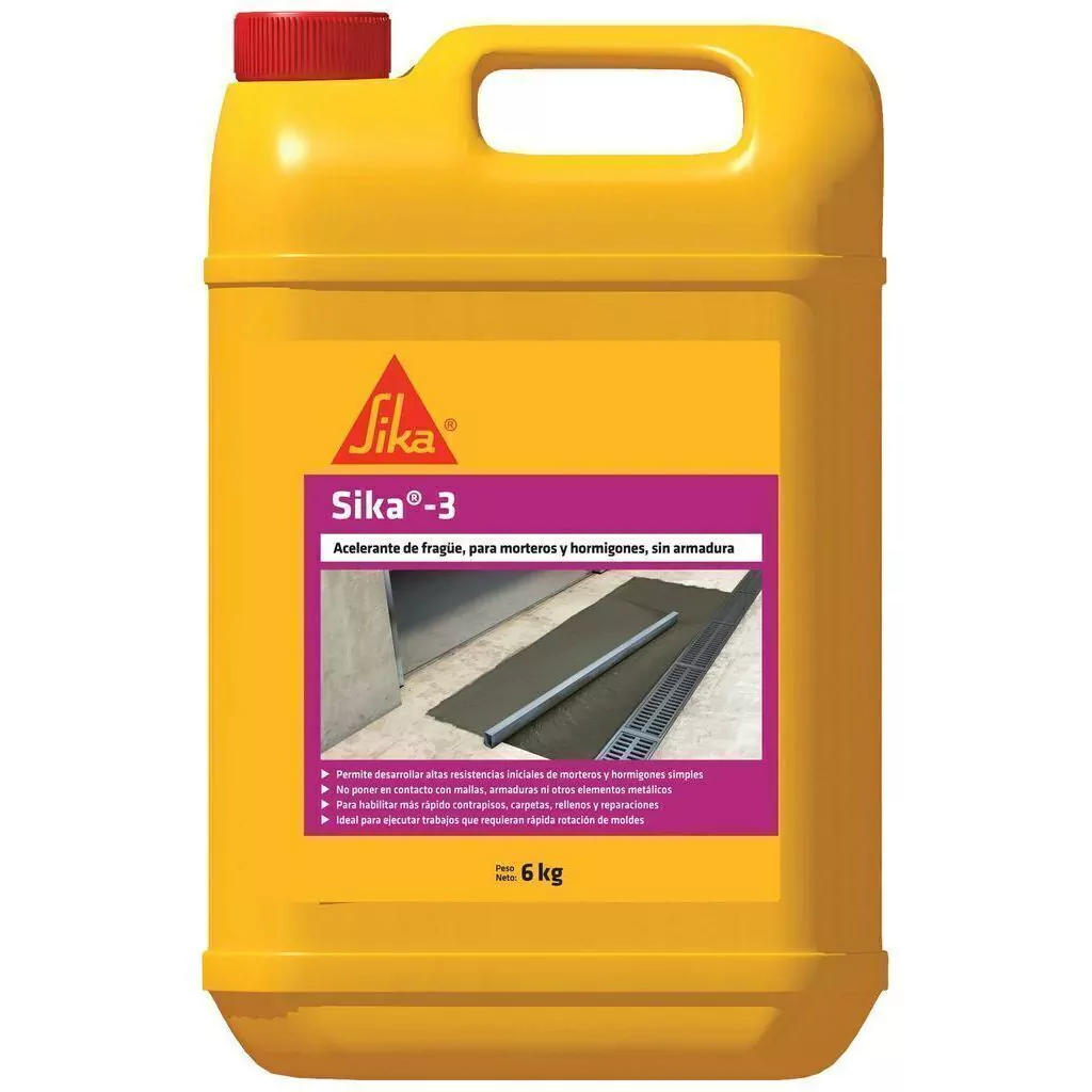 Sika®-3 es un aditivo líquido con acción acelerante. Permite el control del tiempo de fraguado de morteros y hormigones simples, sin armaduras ni contacto con otros elementos metálicos. Contiene cloruros